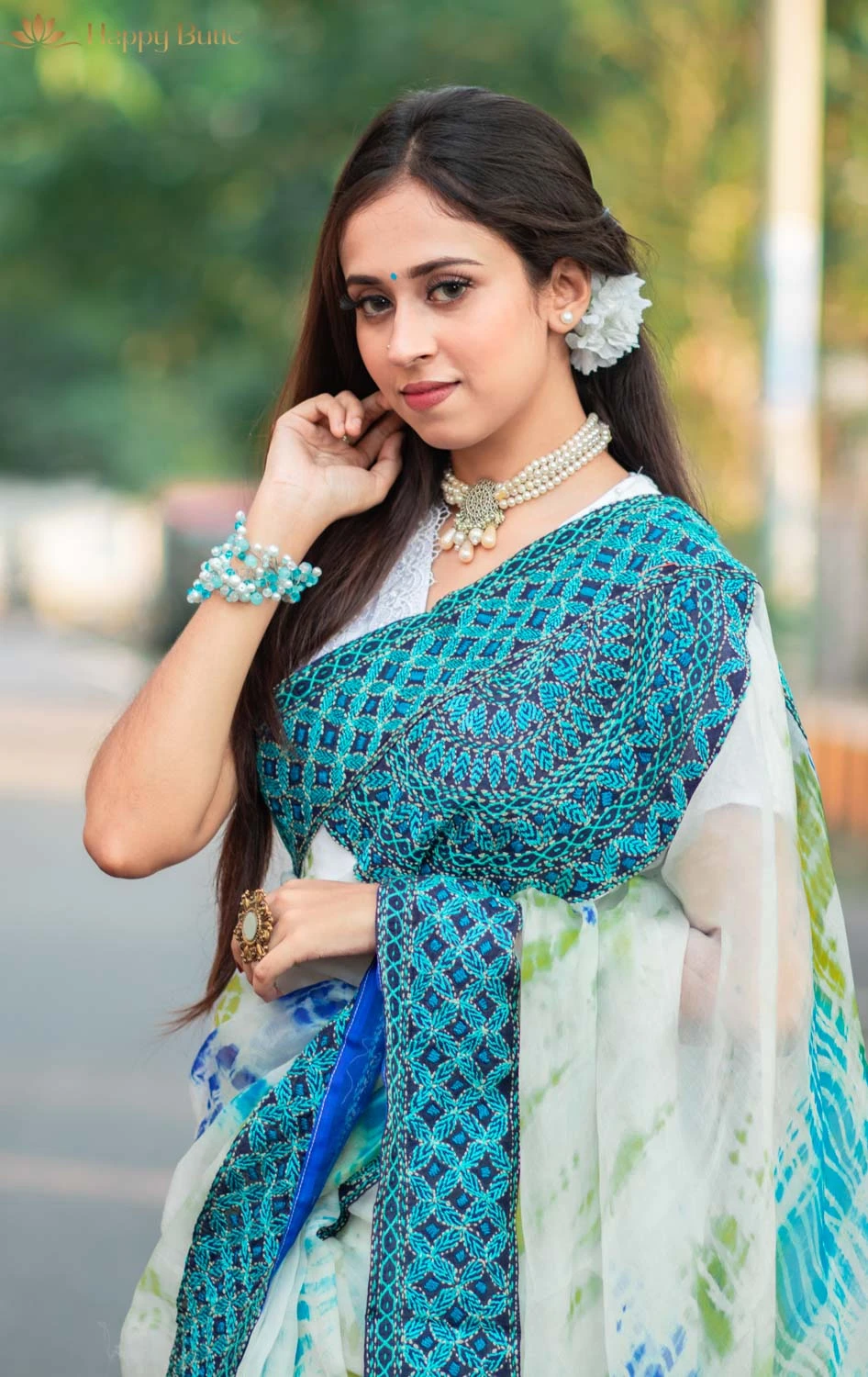 The Batik Soft Muslin Saree by HappyButic is a beautifully crafted garment, 100% made in Bangladesh. It features a stunning color combination of white, blue, and mint, creating a refreshing and elegant look. Made from a blend of pure cotton and tarcel, this saree offers the lightweight and breathable comfort of muslin fabric. It is both washable and color-guaranteed, ensuring long-lasting durability while maintaining its softness.