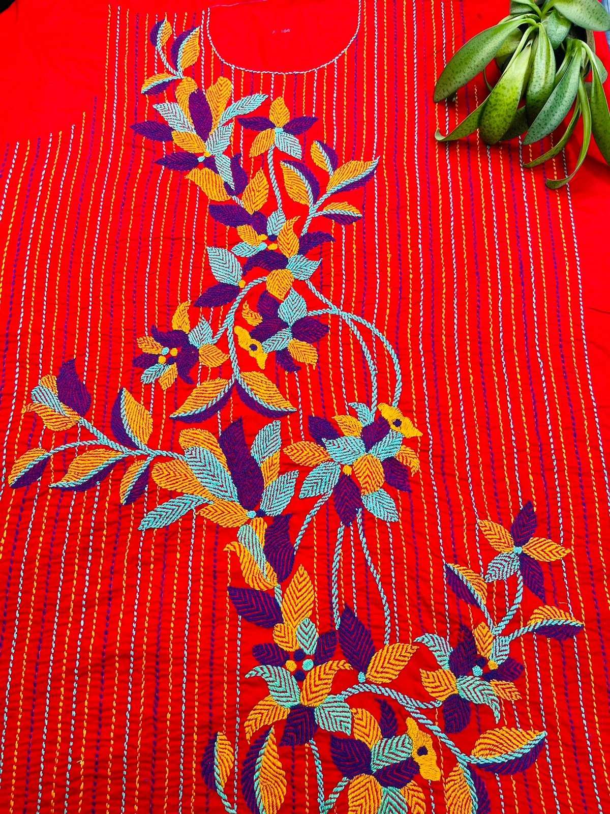 Elevate your style with this Cotton Unstitched Hand-Embroidered One-Piece Dress, a perfect fusion of tradition and comfort.