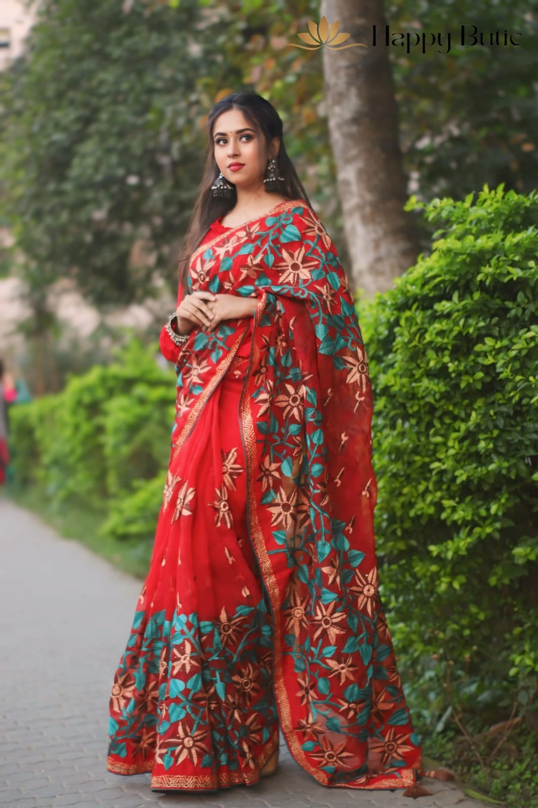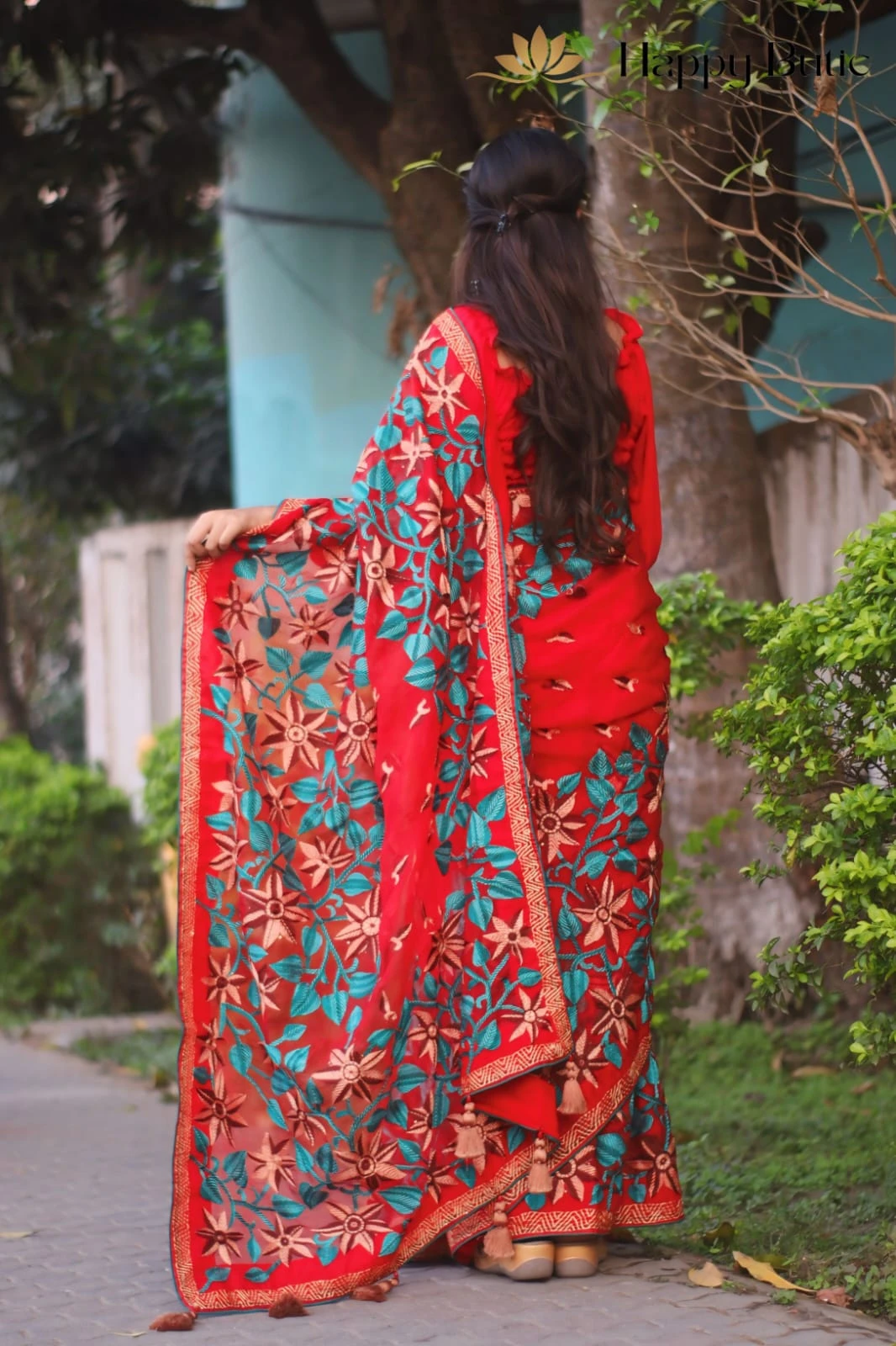 Step into timeless beauty with this Muslin Hand-Embroidered Saree, designed for sophistication and grace.